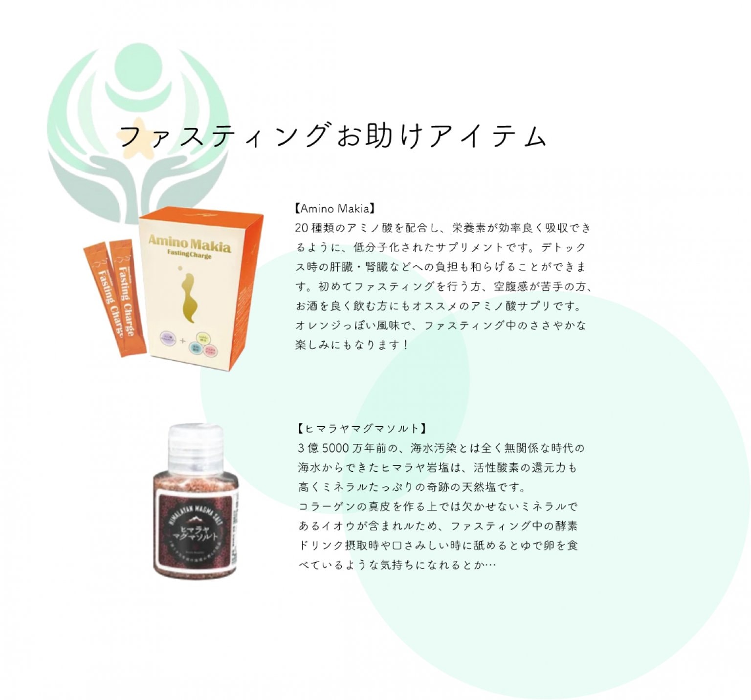 20種類のアミノ酸を配合し、栄養素が効率良く吸収できるように、低分子化されたサプリメントです。デトックス時の肝臓・腎臓などへの負担も和らげることができます。初めてファスティングを行う方、空腹感が苦手の方、お酒を良く飲む方にもオススメのアミノ酸サプリです。