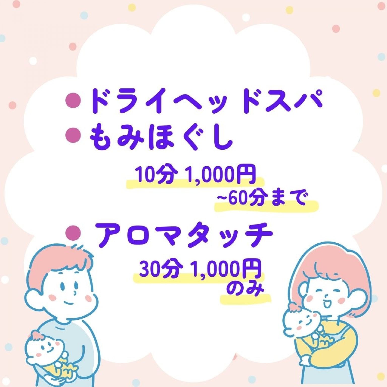 赤ちゃんケアで当サロンへ通われているママパパ限定のコースです。