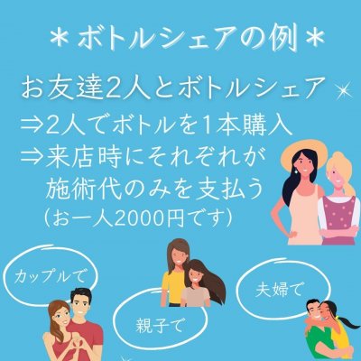ボトルを購入された後、ボトルを使い切るまで1回2000円で来店できます。
