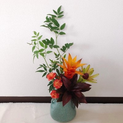 【内容】 ・お送りしたお花、花器、剣山を使って 初心者でも楽しくいけばなを体験できます