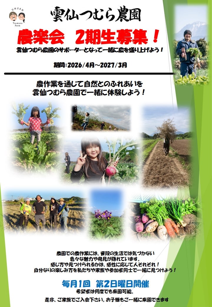 b)月1回以上の希望をされる場合、農楽会とは別日に雲仙つむら農園と予定をすりあわせて何日でも体験可能です。