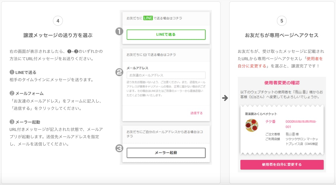 当日店頭または現地にてメール内にあるリンク先のWEBチケット画面をお見せいただきます。