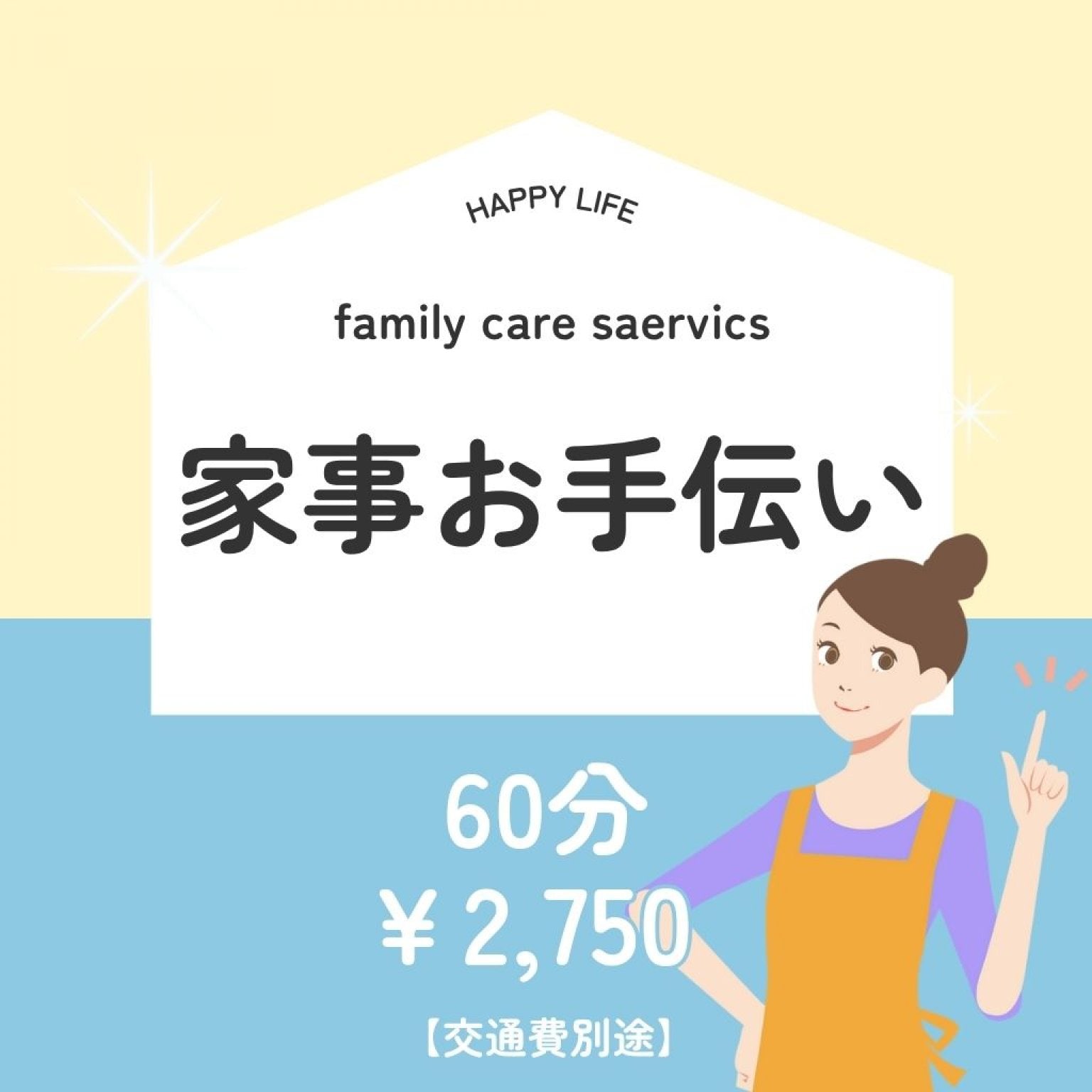 主に掃除、調理、洗濯など一般的な家事をお手伝いさせていただきます。