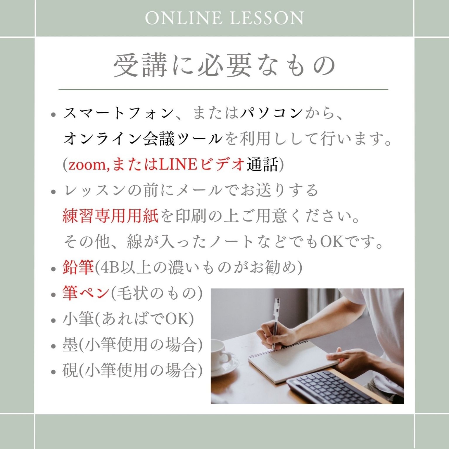 ・お客様に合わせて進めるため、70分内でレッスンできる文字には個人差が生じる事がございますのでご了承ください。