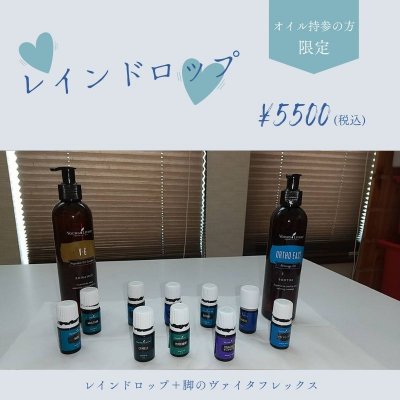 レインドロップの施術は,ヤングリヴィング社の精油を背中に雨だれのように惜しげなく滴下させ,独特の手技で肌に浸透させます。