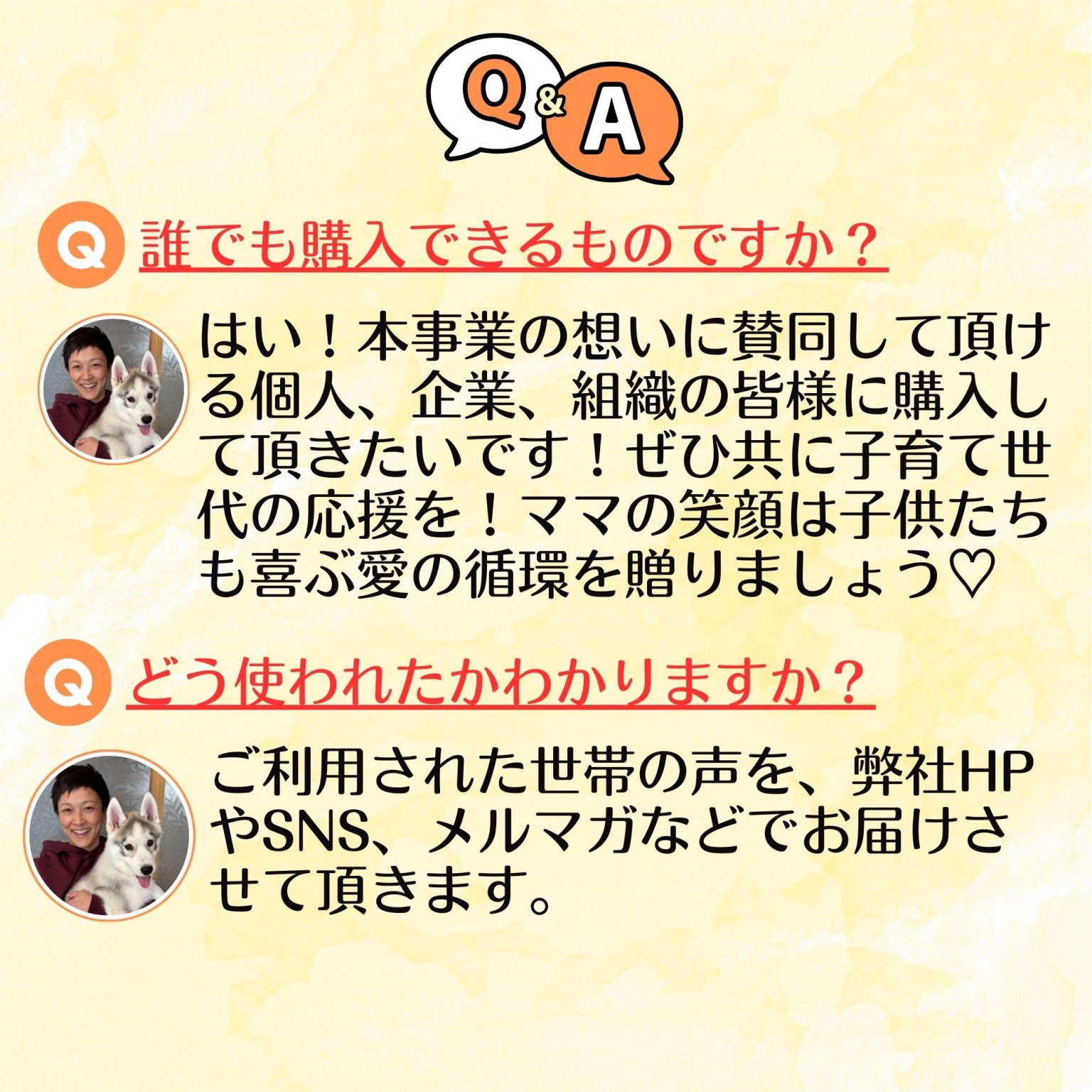 ご利用された世帯に声を、HP、SNS、メルマガなどでお届けさせて頂きます。