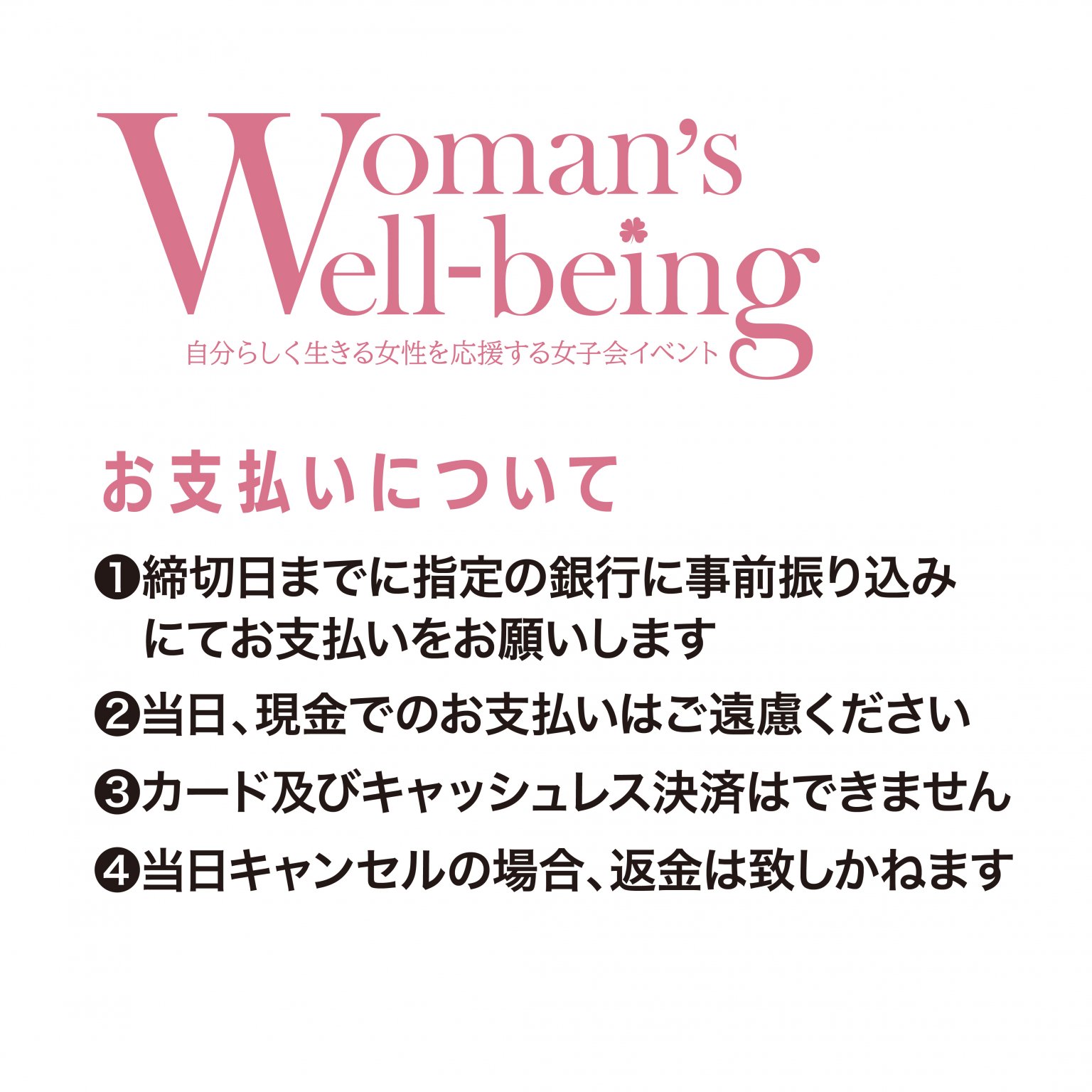 ②当日、現金でのお支払いはご遠慮下さい。