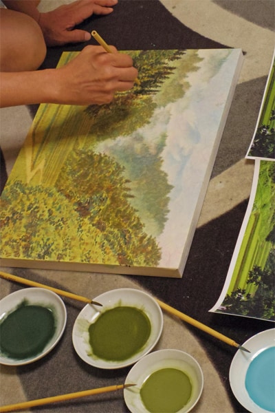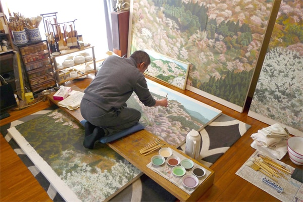 日本画家 佐藤画伯は表現手法は新たな表現を試みつつも、材料や技法に関しては 古来からの伝統的な材料と技法にこだわり、手間ひまを惜しまず何百年先も劣化しない歴史に裏打ちされた伝統手法を踏襲しています。