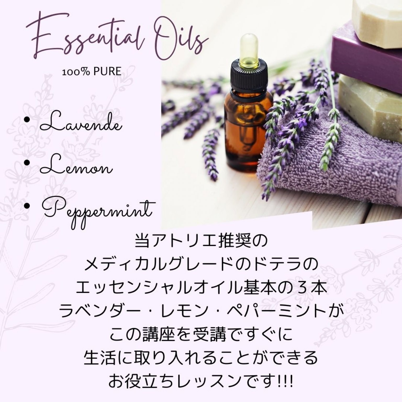 ★お送りしましたエッセンシャルオイル3種は、あけたり使用したりせずセミナー当日まで、その他のセット内容と一緒に大切に保管をお願いいたします。
