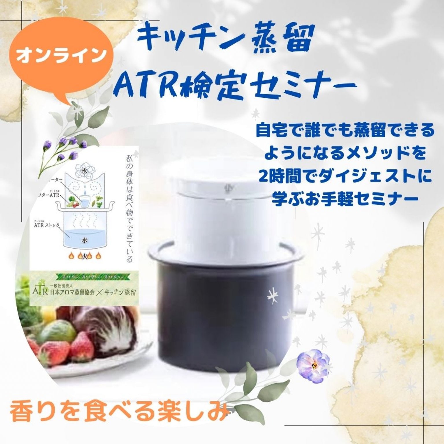 ✔︎上記二点をクリアしていただくと、キッチン蒸留ATR検定認定資格を名乗ることができ、自身のレッスンなどでATR POTを使用した蒸留実演が可能(キッチン蒸留理論は謳えません)