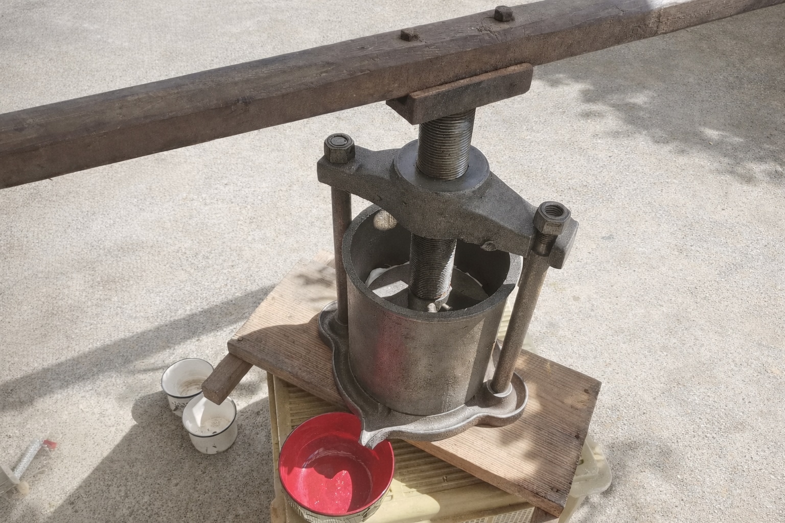 大正時代か昭和初期かのどちらかで実際に使われていた搾油機を貸し出しします。