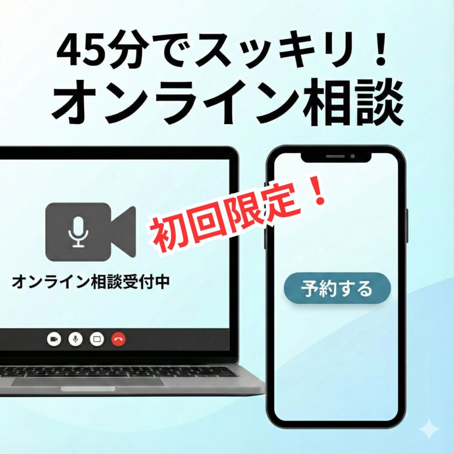 • 予約された日時が不都合になった場合は、前日までにメールにて
