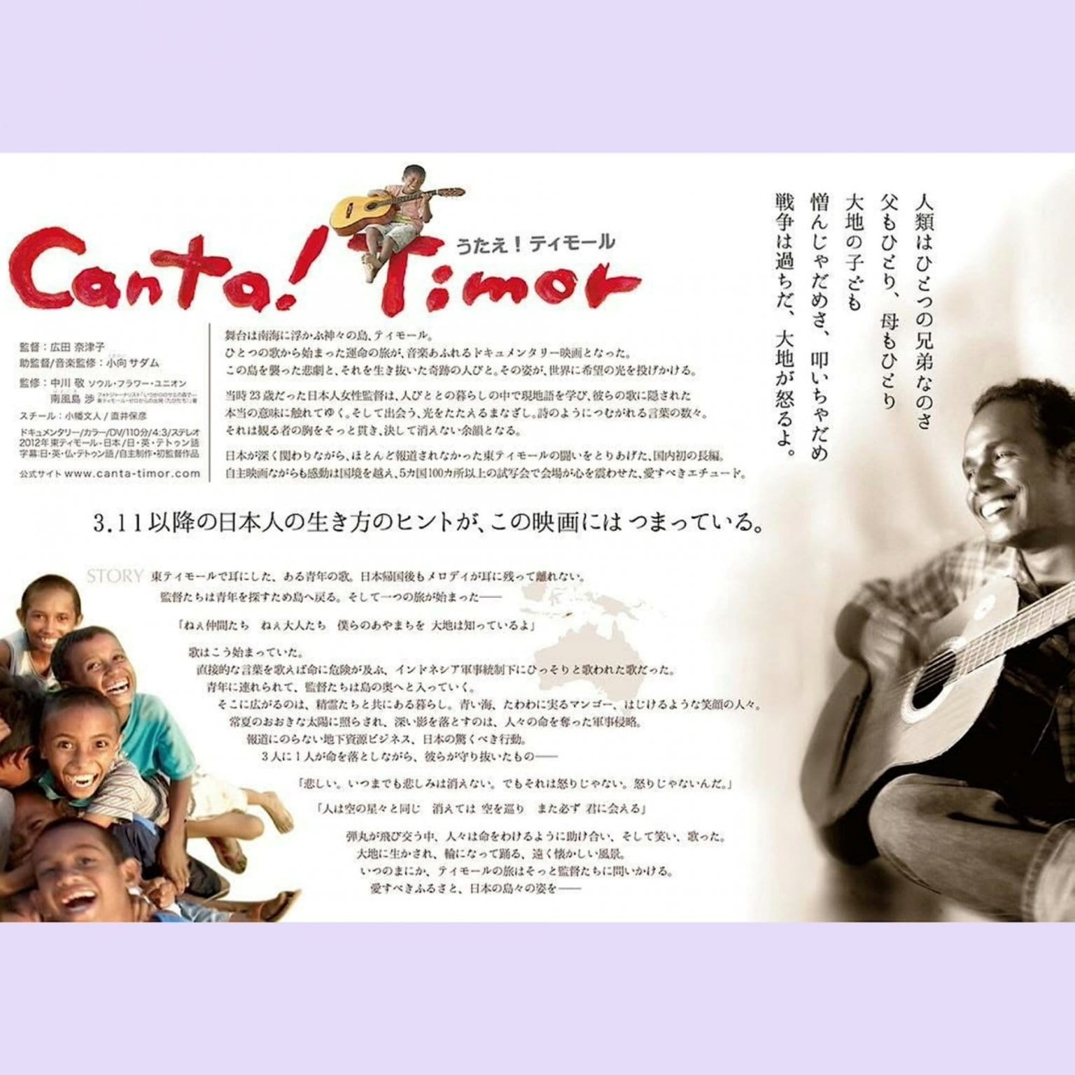 東ティモールを舞台にしたドキュメンタリー映画独立運動の中で歌い継がれた歌と、それを支えた人々の姿を描いています。