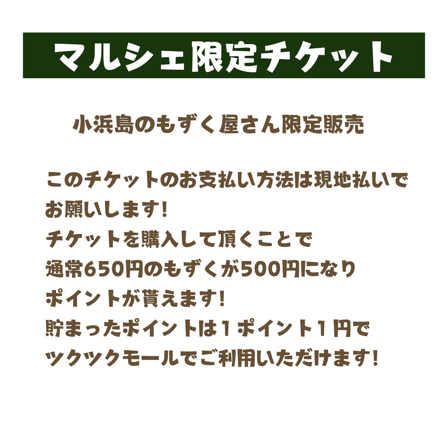 WEBチケットを購入することで通常650円のもずくが500円で購入することができます。