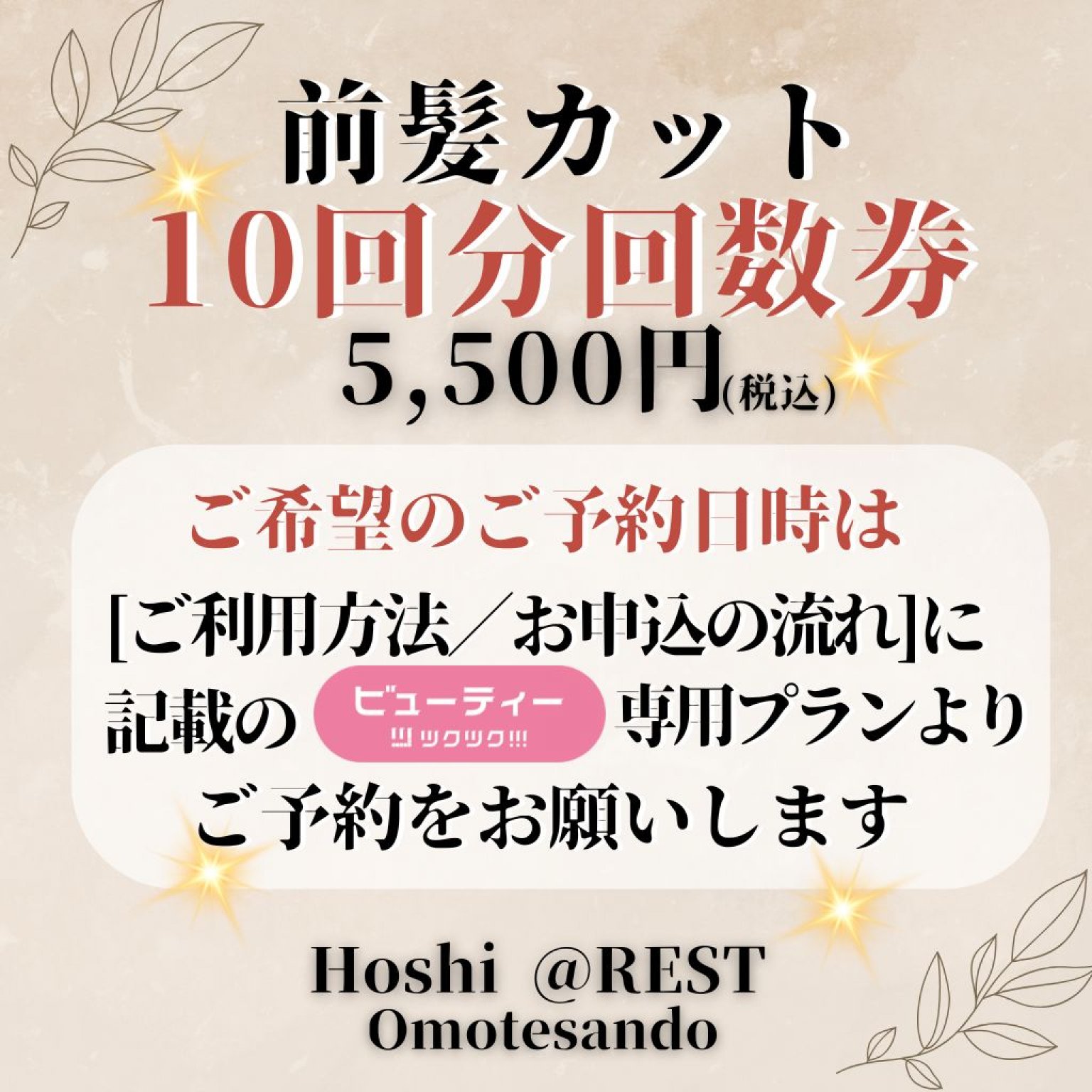 ◆ 前髪カット回数券(10回分)5,500円(税込)/各20分