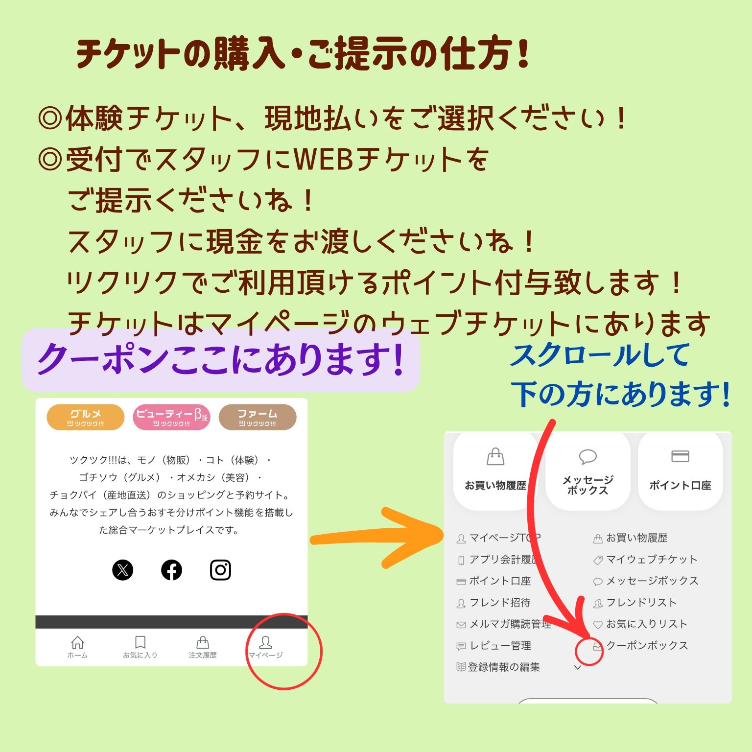 3.当日はチケット画面をご提示の上、施術を受けていただけます。