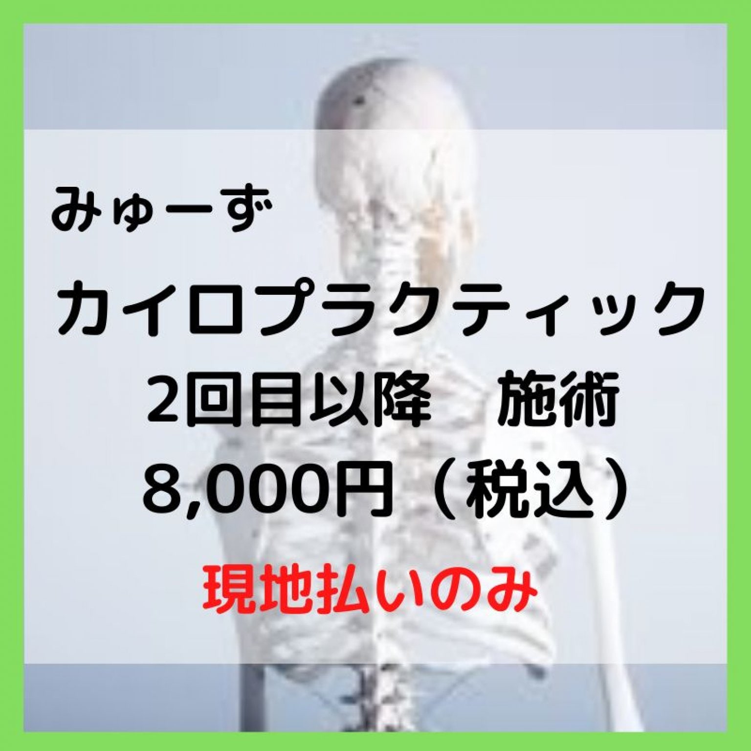 カイロプラクティック2回目以降の方、8,000円(税込)(約60分)