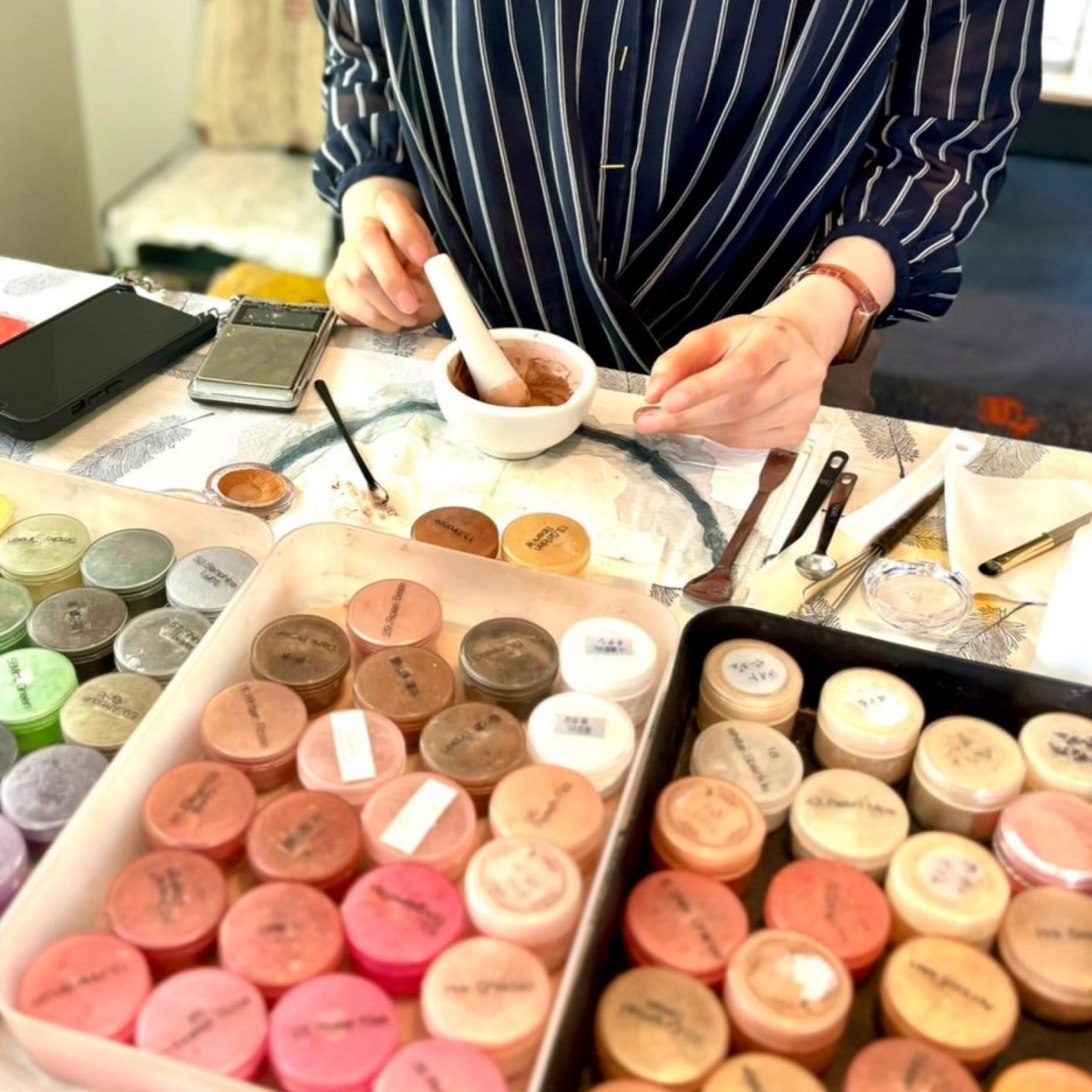 精油・フラワーウオーター・植物油・植物バター・みつろう・アースピグメント、鉱物鉱石・こだわりのお水
