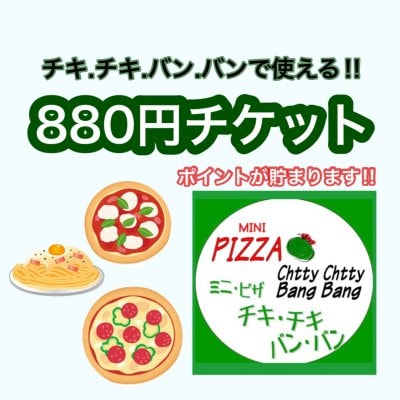 ミニピザのお店チキ.チキ.バン.バンで使える880円ウェブチケットです。