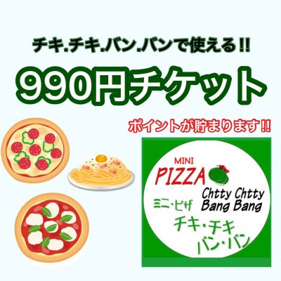 ミニピザのお店チキ.チキ.バン.バンで使える990円ウェブチケットです。