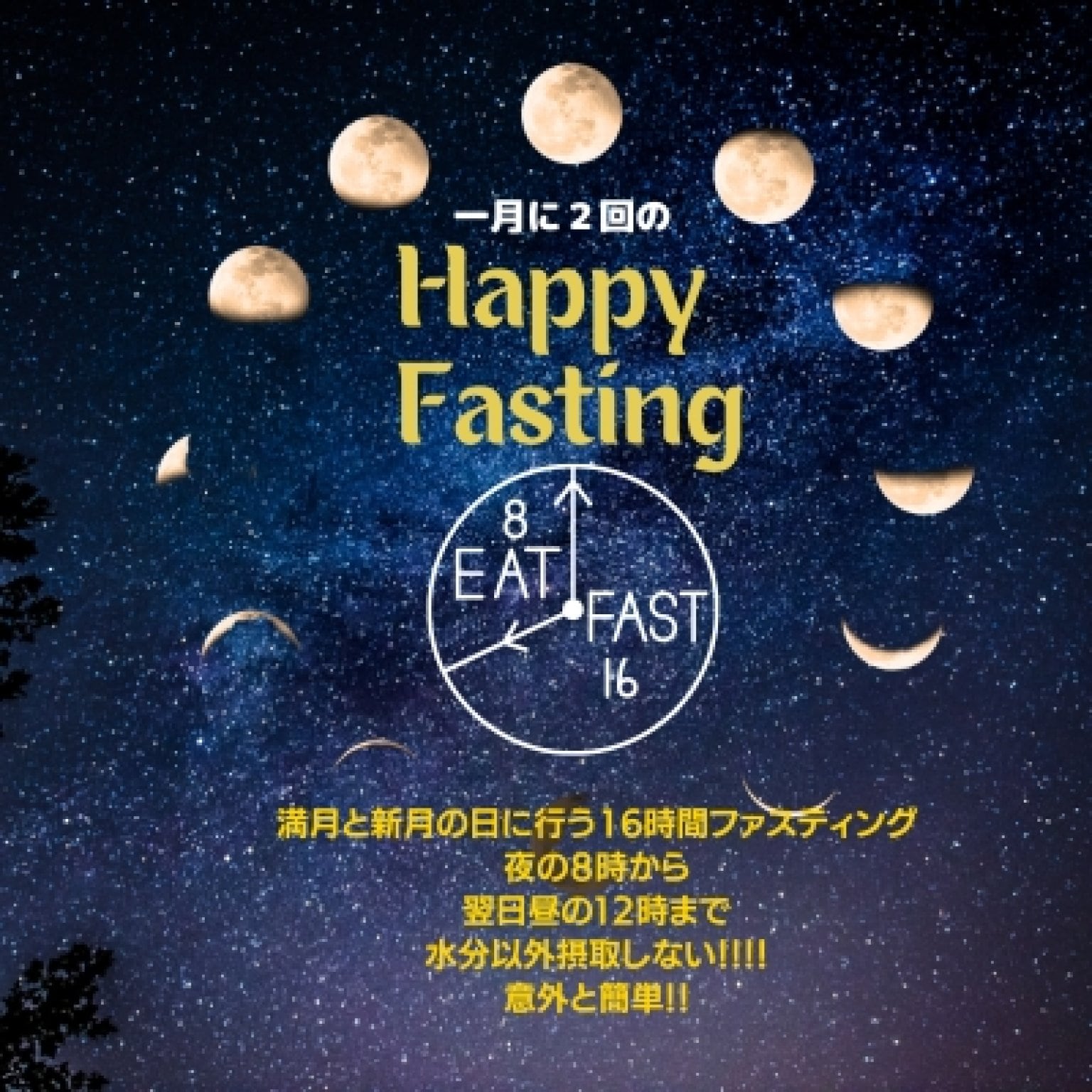 ◆新月と満月に行う月に2回のファスティングは身体リセットとして16時間ファジーダイエットをおすすめしております。