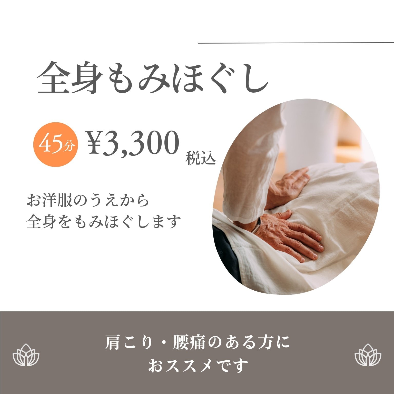 全身もみほぐし 45分3,300円税込