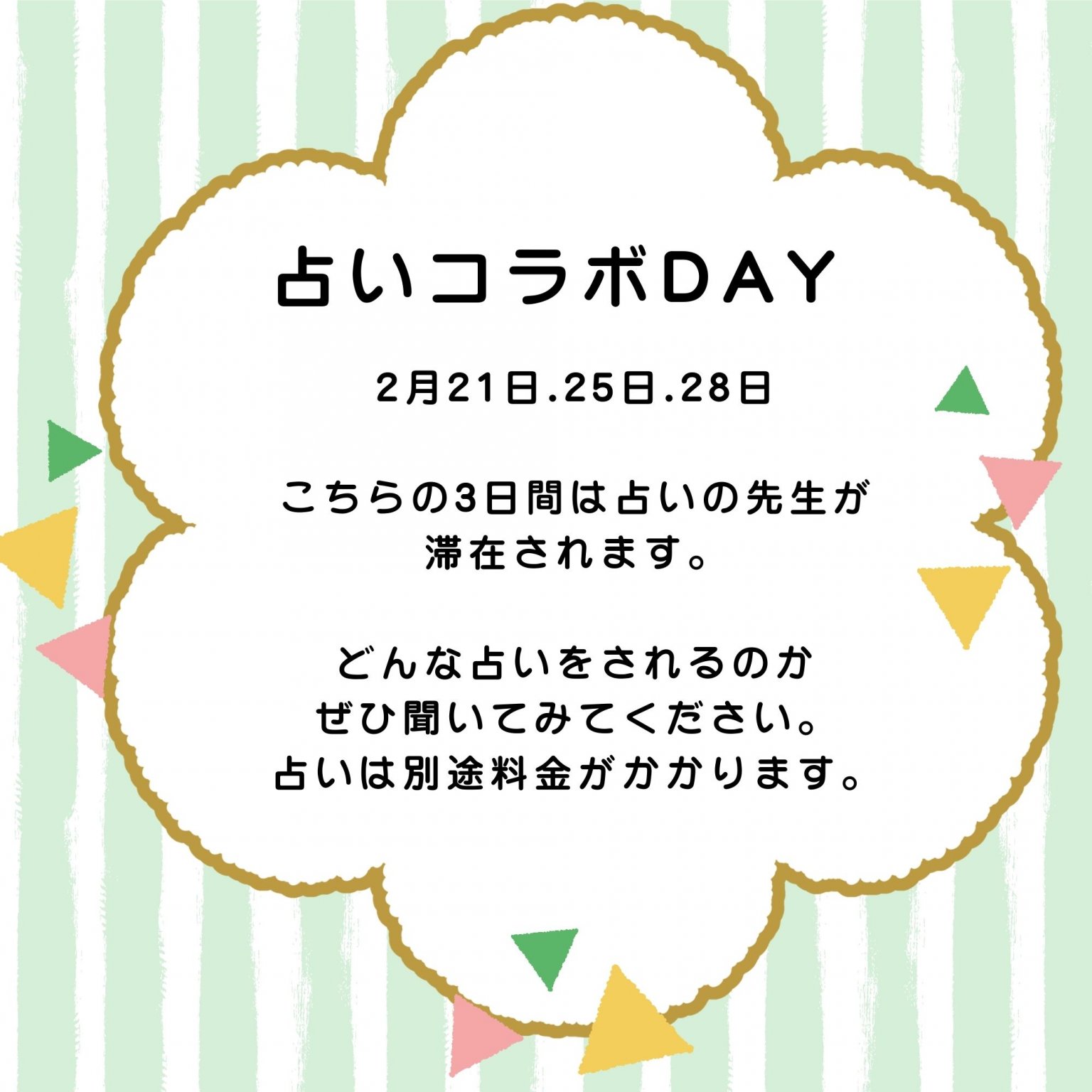 2月21日(土)、25日(水)、28日(土)は占い師の方がいらっしゃいます。