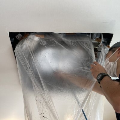 ②お部屋のエアコン周辺、床の汚れ防止のため、養生致します。