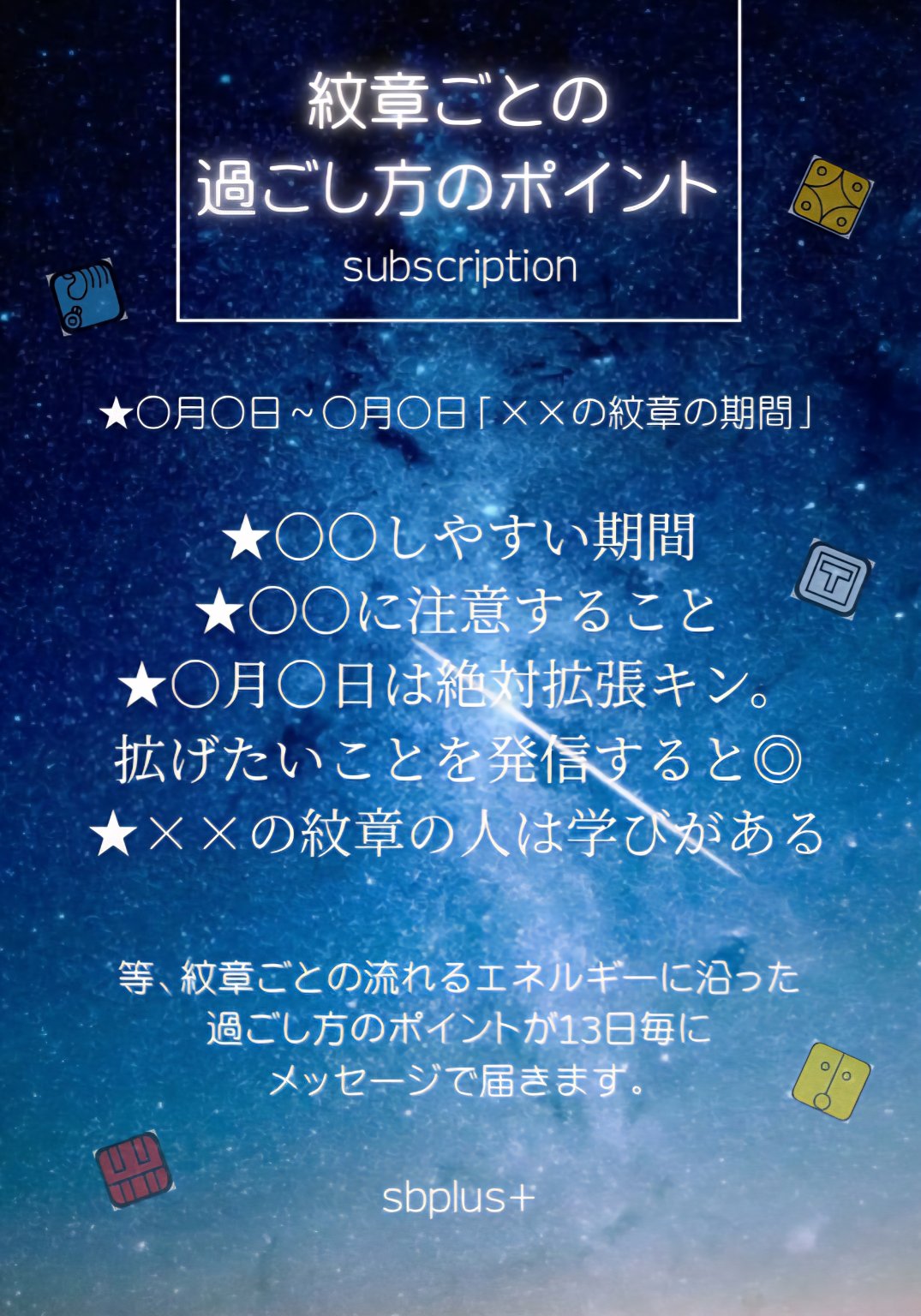 サブスクチケットをご購入後、ご登録のアドレス先に紋章別の過ごし方のガイドが13日毎に配信されます。