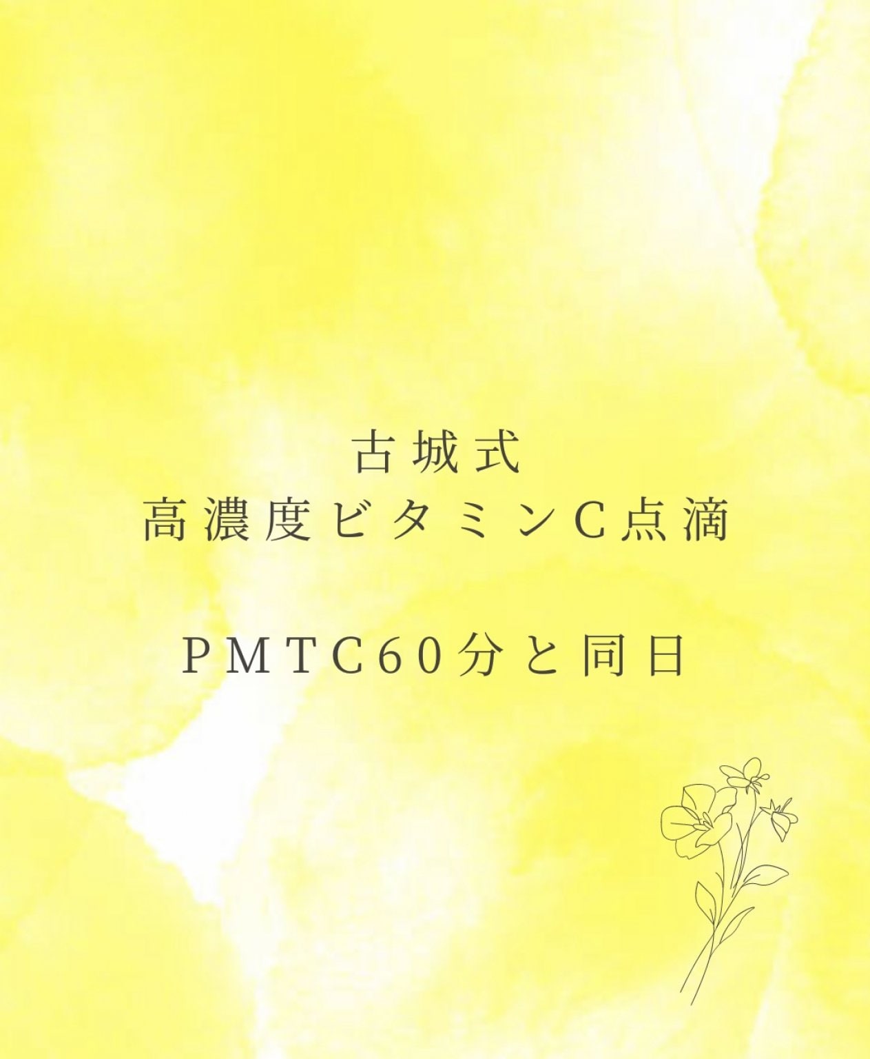 ・PMTCと同日に高濃度ビタミンC(ミネラル入り)点滴をお受けになる方限定です。10%OFF