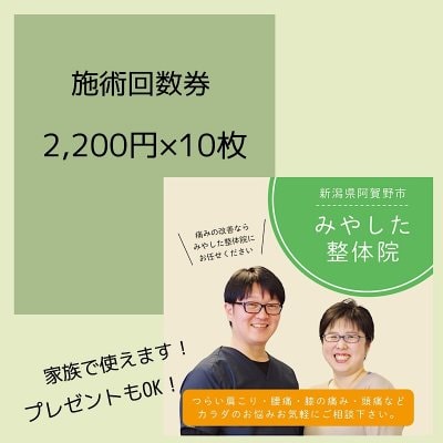 2,200円が10枚綴りになった回数券をお渡しいたします。お身体の状況に合わせてご利用ください。
