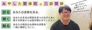 みやした整体院では【三診整体】をモットーに皆様のお身体と心に寄り添って施術しております。