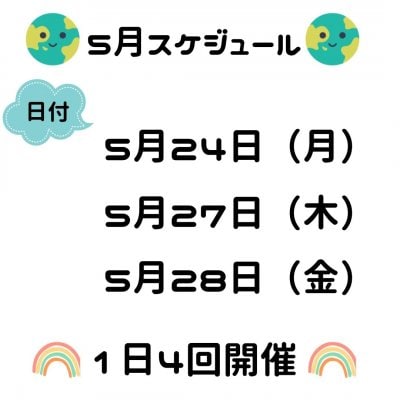 5月24日(月)、27日(木)、28日(金)の4つの時間帯で、ワークショップを開催します。