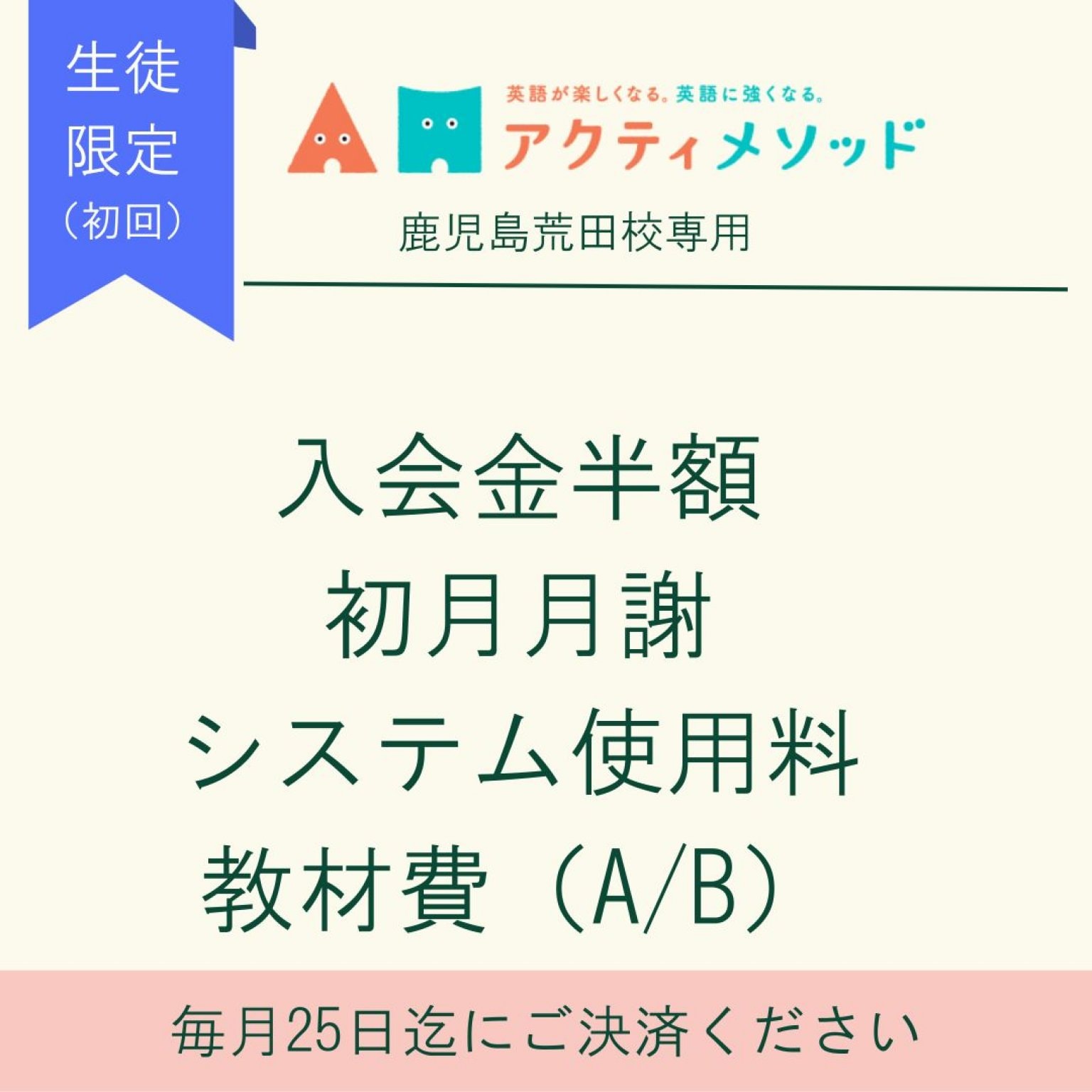 ⚫︎2ヶ月目以降は、月謝(13,200円)&システム使用料(1,100円)合計14,300円となります。