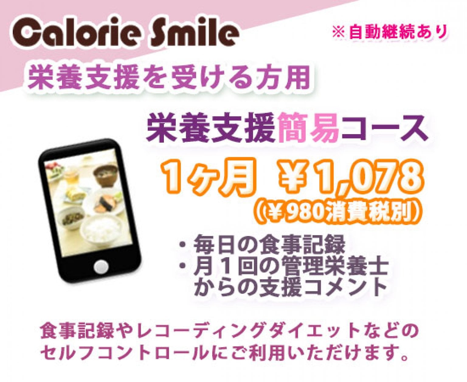 サービス内容:毎日の食事記録/管理栄養士から月1回の支援コメント