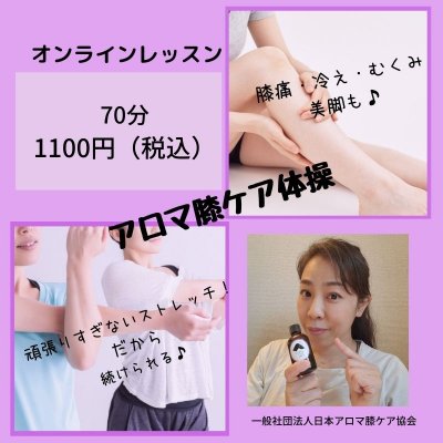 [楢林式アロマ膝ケア体操/オンラインレッスン♪70分1回1100円]♪膝痛・冷え・むくみも改善♪[一般社団法人日本アロマ膝ケア協会]