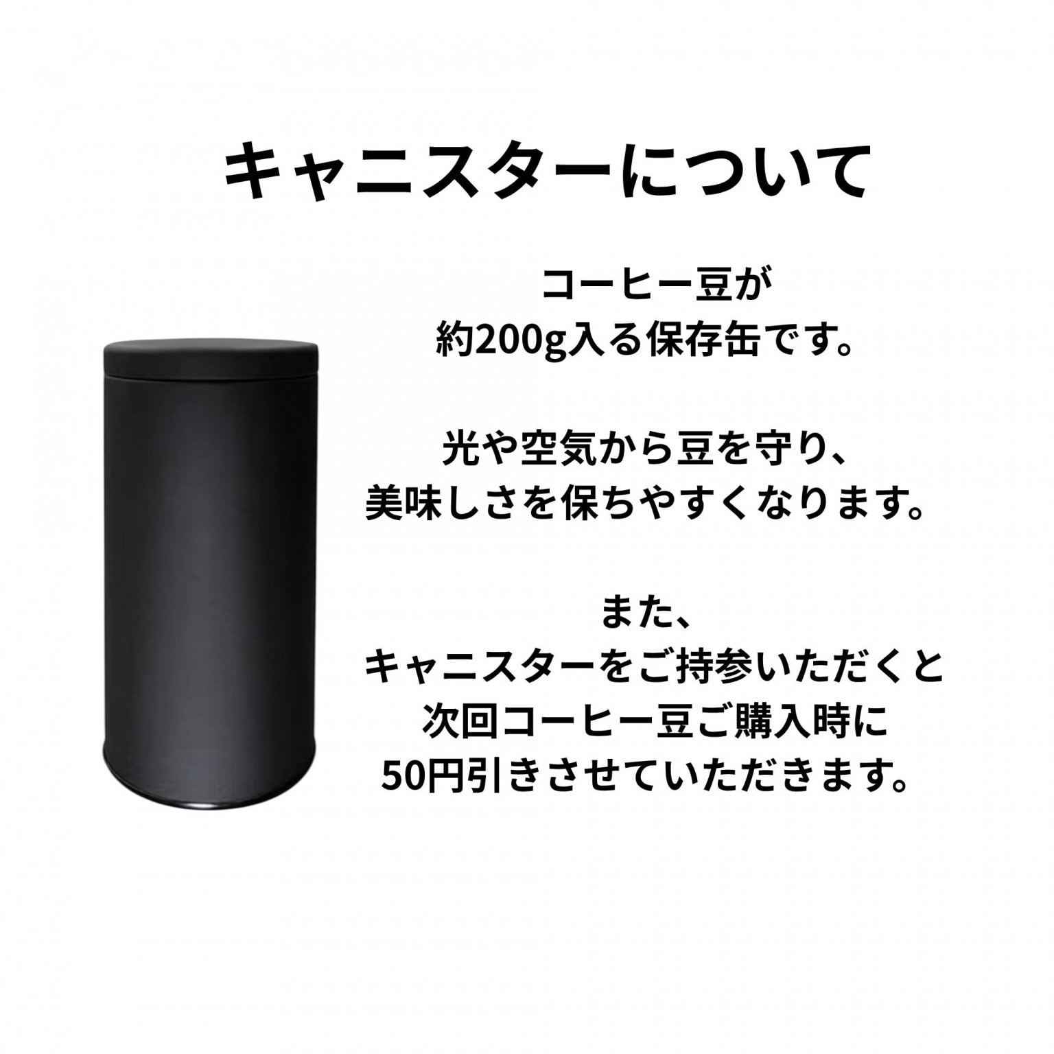 持参いただくと、次回コーヒー豆購入時に50円引きいたします!