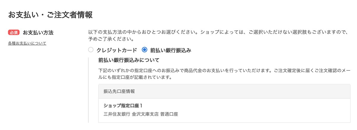 購入時には、前払い銀行振込を選んでください。
