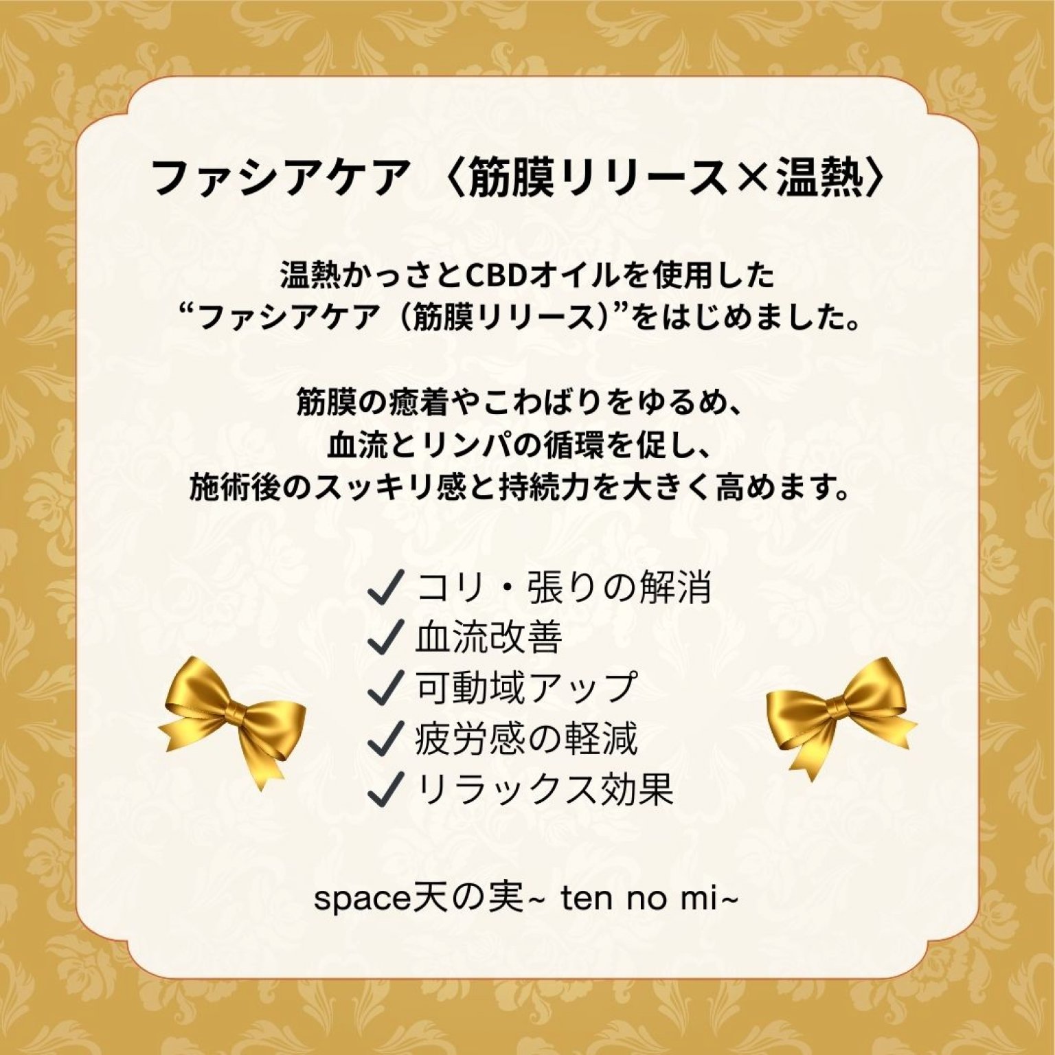 温熱 × ファシア(筋膜)ケア を中心とした新しい施術メニューを導入します。