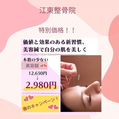 鍼を打つことで、コラーゲンが増えハリのあるお肌に生まれ変わります、また、血流量が促進されるのでくすみや、シワ
