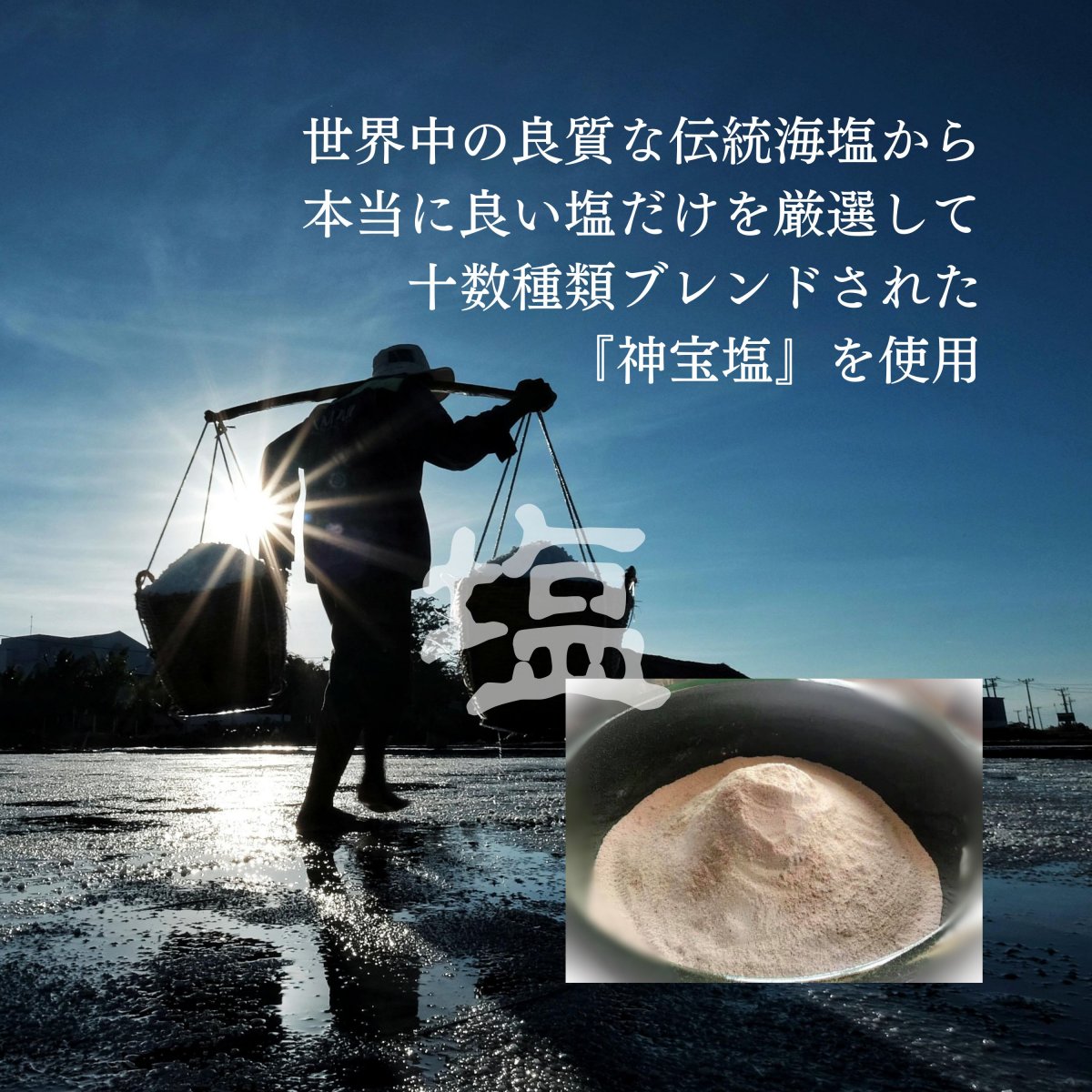 本当に良い伝統海塩だけを厳選してブレンドした『神宝塩』を使用。