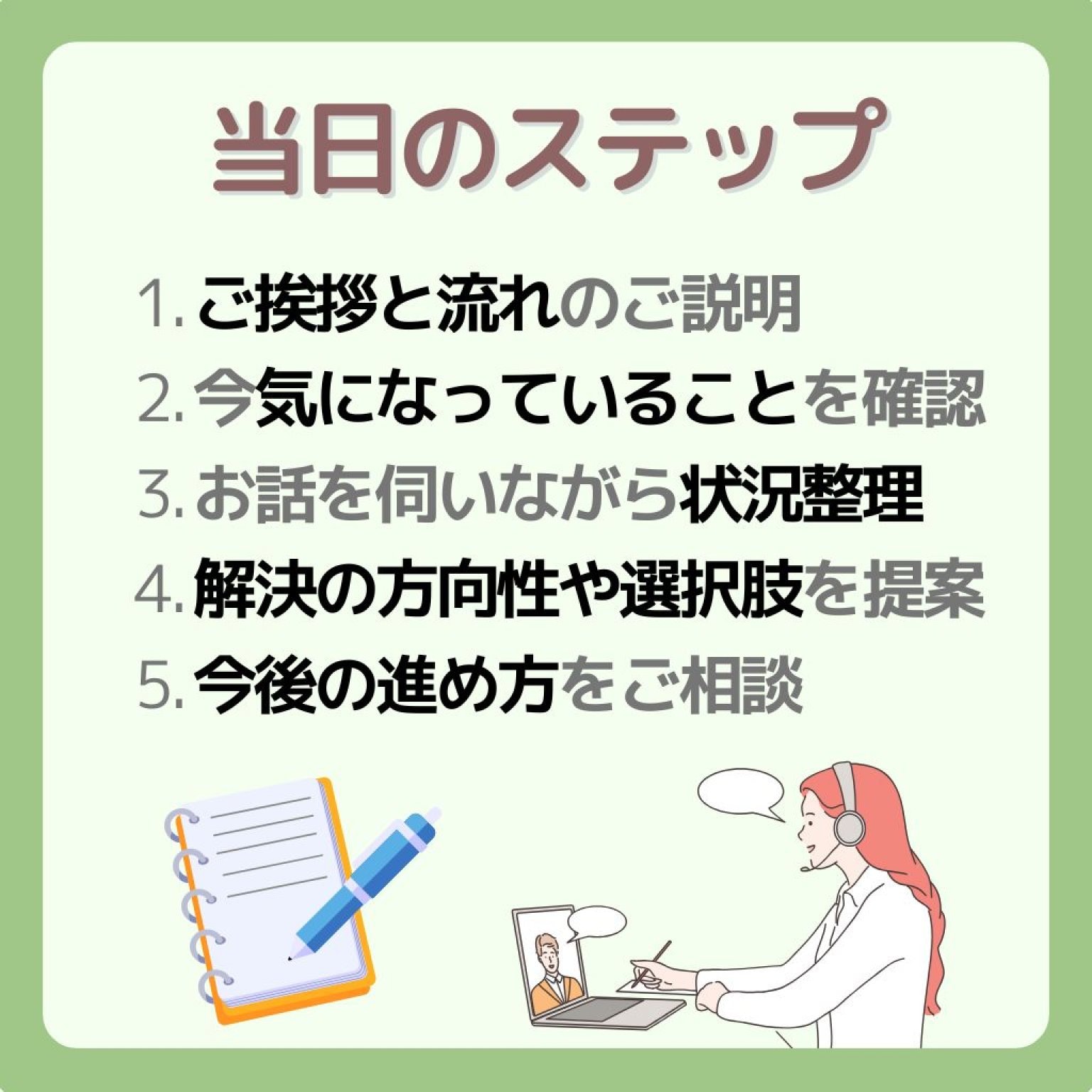 ①ご挨拶と流れのご説明