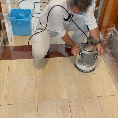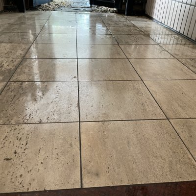 玄関の天然大理石(ボテチーノ)にかなり汚れが染み込み、黒っぽくなっていました。『シミ抜き洗浄』し、『再生研磨施工』をし、最後に『スリップ防止』のコーティングをさせて頂きました。