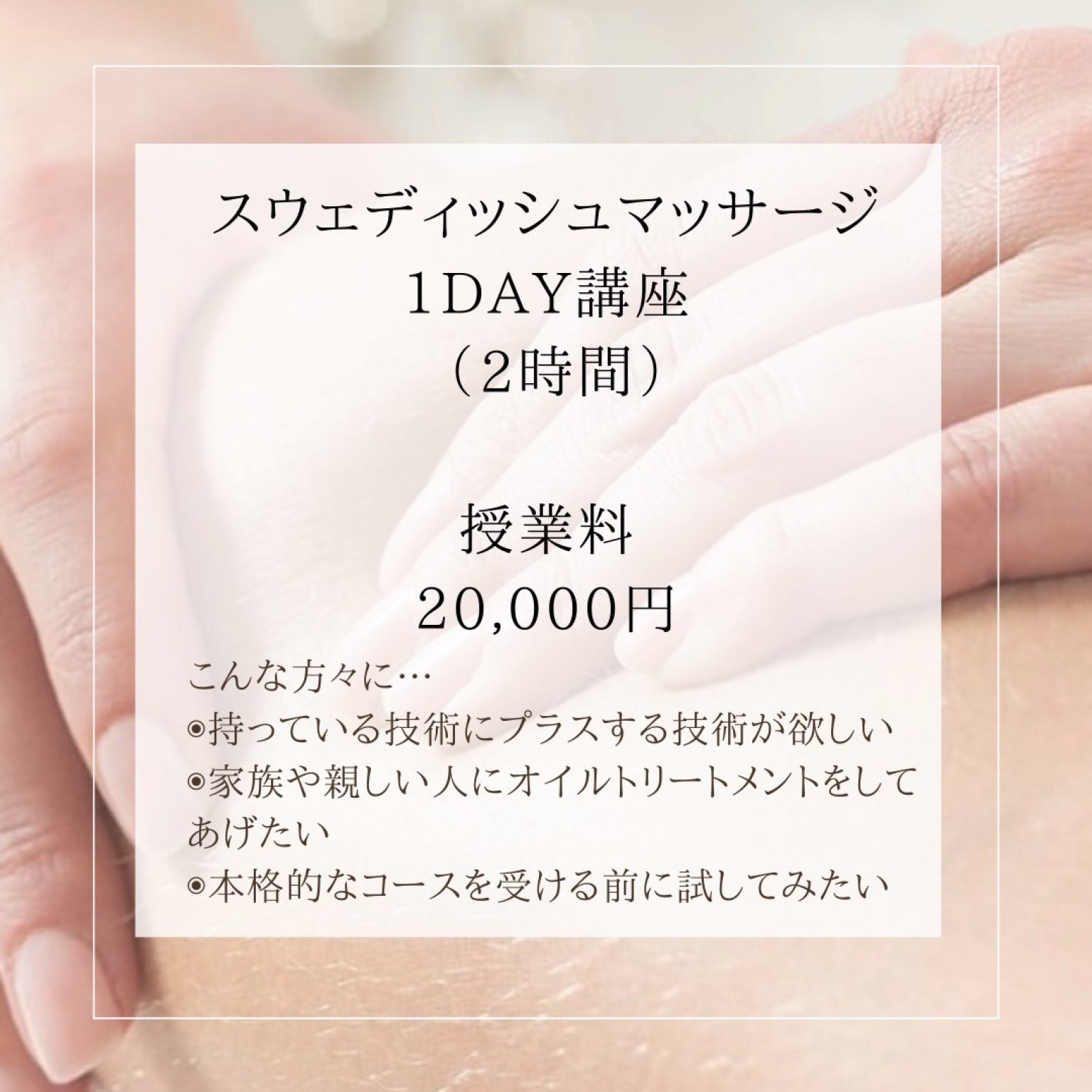 スウェディッシュマッサージ 1DAYコース (担当KAORI)