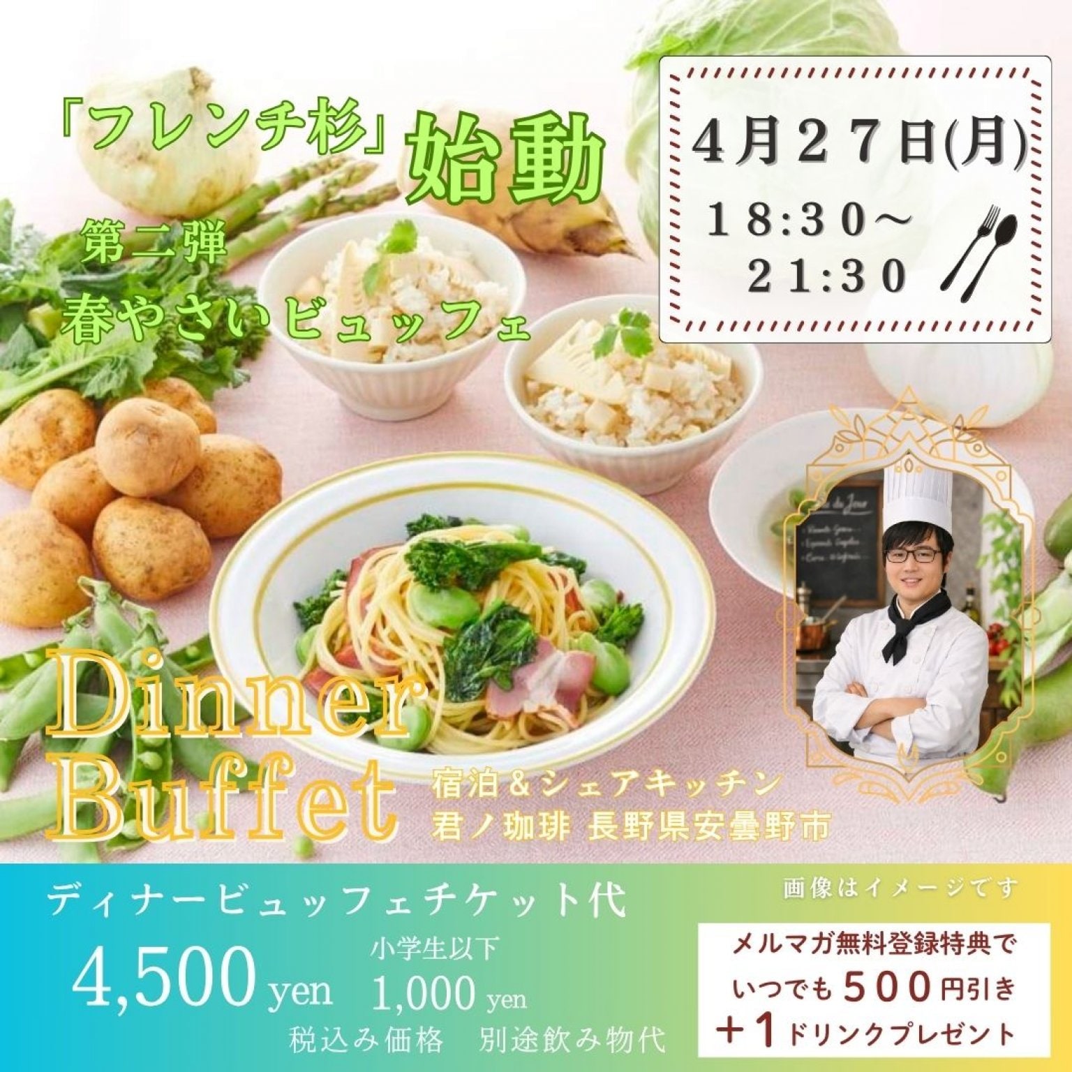 春野菜ビュッフェ形式 (飲み物代は別途)