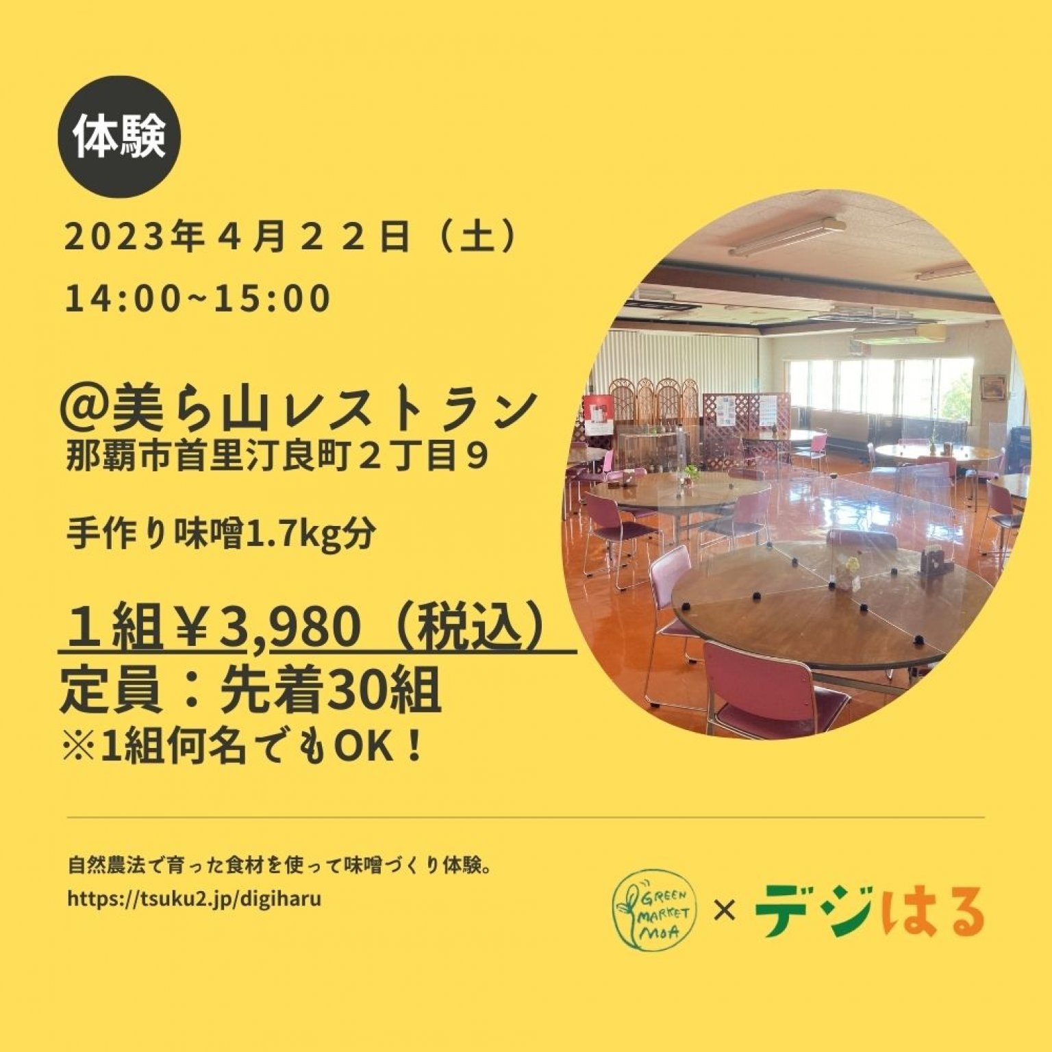 こんにちは!食育イベントのお知らせです!4月22日(土)14時@美ら山レストラン(那覇市首里汀良町2-9グリーンマーケットMOA那覇店敷地内)にて、味噌づくり体験を開催致します!募集詳細は下記の通りです!
