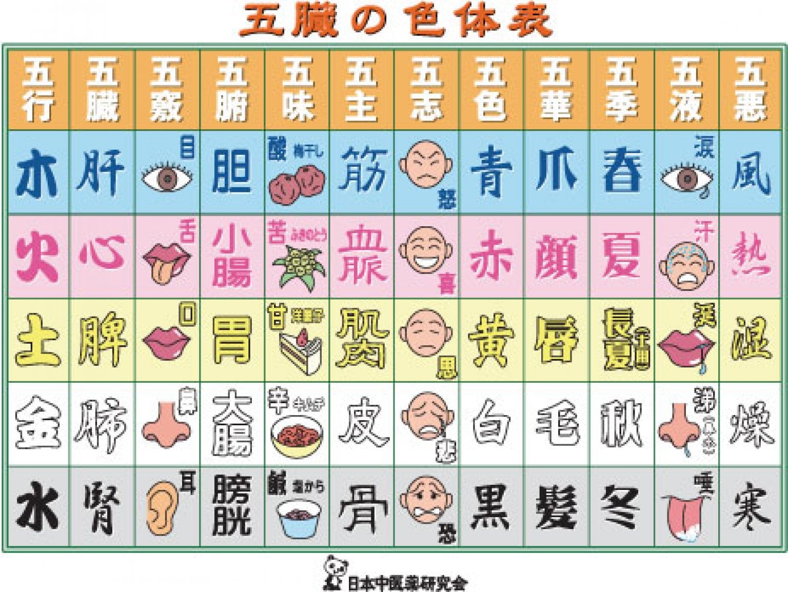 3、身体の見立て方(五行色体表を活用する)