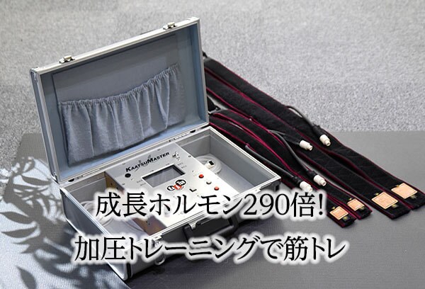 【 成長ホルモン290倍!加圧トレーニングで筋トレ 】30分で2時間分のトレーニング効果! 安心・安全な「低負荷」「短時間」の自重トレーニングで 筋力アップ・ボディメイク! 成長ホルモン分泌でダイエット・美容にも嬉しい成果!! |
