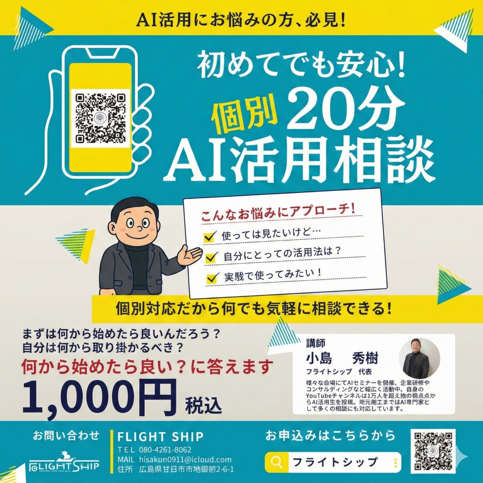 このサービスの目的は、AIを使わせることではなく、あなたにとって意味のある選択肢かどうかを一緒に見極めることです。AIは魔法の道具ではありませんが、正しく使えば確実に助けになります。一方で、合わない人やタイミングもあります。だからこそ、冷静で正直な視点でお話しします。