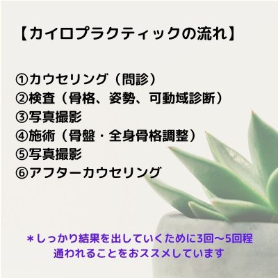<美姿勢カイロプラクティック施術の流れ>